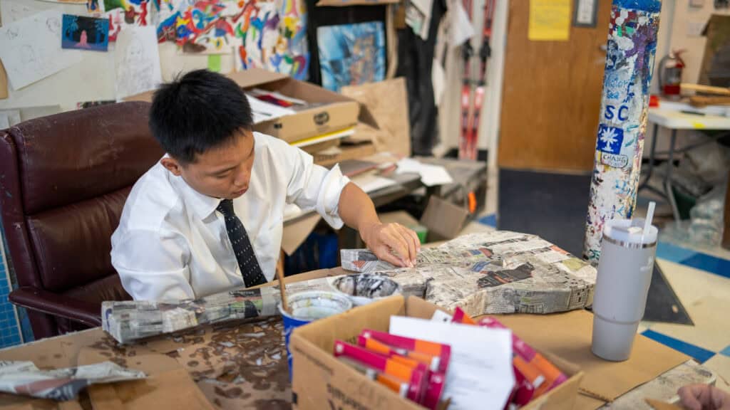 Our Electives Department Chair and art teacher, Dave Welty, notes, “In my classes, I challenge students with learning both the fundamentals of the art making process and the more essential process of creative problem solving… The students explore various materials and modes of expression including drawing, painting, sculpture, ceramics, and digital media.”